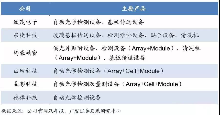 大陆面板设备厂商与台湾设备厂商切入的角度类似,也是从后段模组制程设备及检测设备起步。