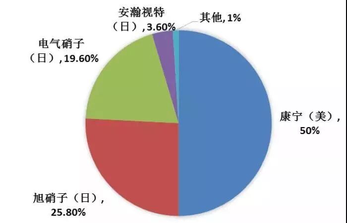 全球近200亿美元的利润主要被四家厂商瓜分,康宁(包括三星康宁合资公司)约占了全球市场的一半,日本的旭硝子、电气硝子分别占据了25.8%、19.6%的份额,安翰视特占3.6%。
